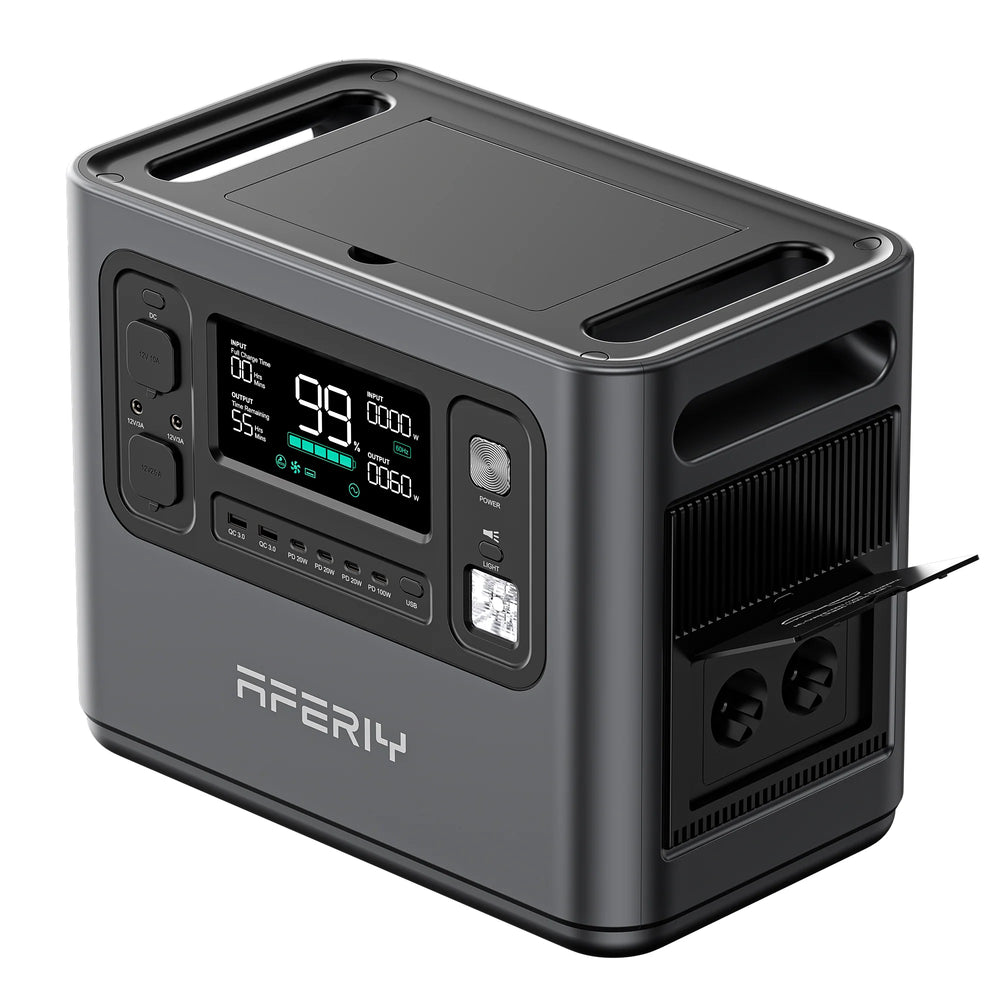 AFERIY P110 1200W 960Wh-1008Wh Stazione di energia portatile ad alta capacità, è dotata di una batteria LiFePO4 altamente sicura e di un sistema di gestione della batteria BMS, che è estremamente sicuro e prolunga la durata della batteria. La funzione UPS è configurata e l'alimentazione può essere commutata in 10 millisecondi per la protezione da interruzioni di corrente. Sufficiente per fornire alimentazione di emergenza ai tuoi dispositivi essenziali all'aperto o in caso di interruzione di corrente.